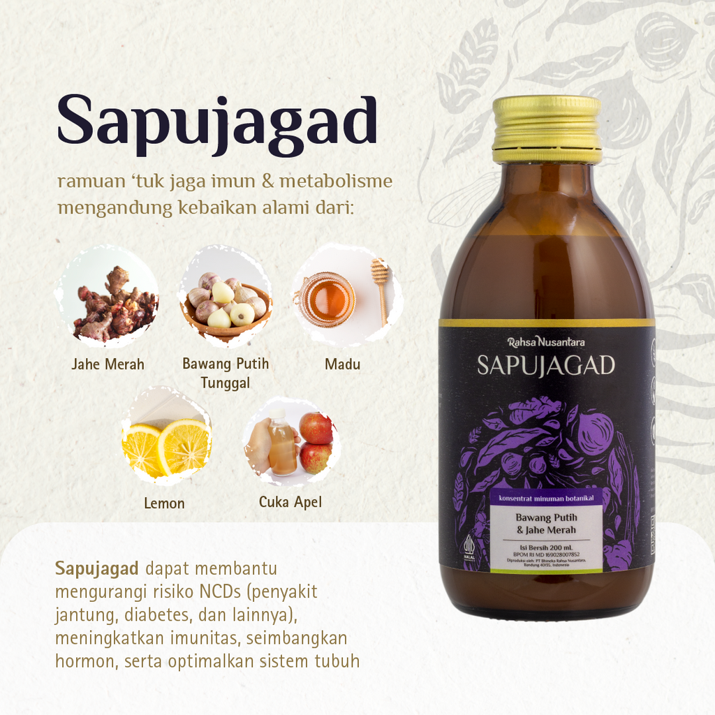 Sapujagad 200mL | BPOM - Jus Bawang Putih Tunggal Vitamin Herbal Mencegah Kolesterol & Asam Urat | by Rahsa Nusantara