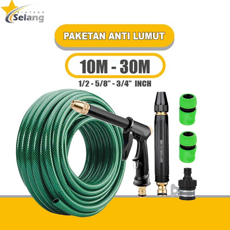 BINTANG Selang Air Cuci Motor 1/2 5/8 3/4 Inch 30 Meter Sepaket Selang Air Cuci Motor Cuci Mobil Siram Taman Selang Bena