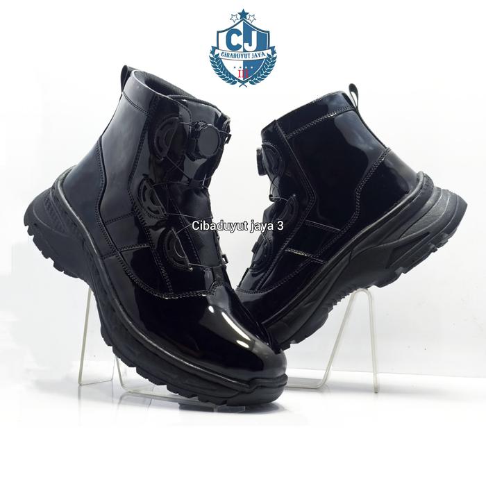 SEPATU PDL PDH TACTICAL HITAM KILAP TALI PUTAR WATERPROOF MID-CUT 6"INCH GAZEL QUICK RELEASE