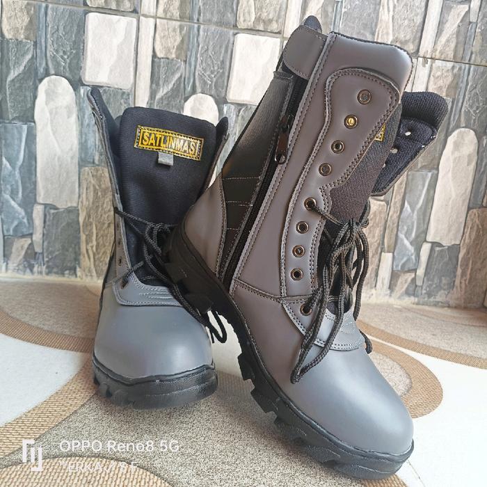 Sepatu PDL Linmas Abu-Abu Hitam Panjang 8inch Bahan Sintetis Karet Boots