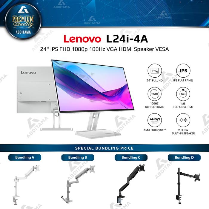 Monitor LED Lenovo L24i-4A 24" IPS FHD 1080p 100Hz VGA HDMI Speaker VESA Silver Coud Grey - L24i-4A Seller
