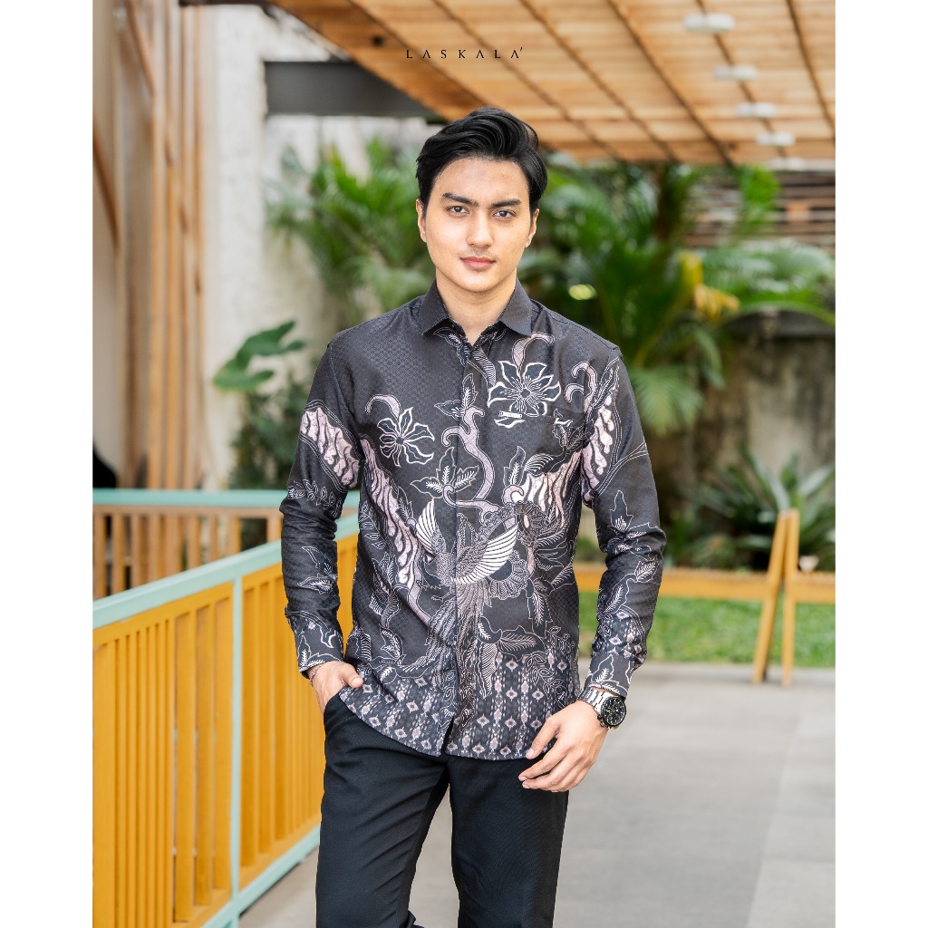 Laskala Batik Premium Tondano Brown Kemeja Batik Pria Slimfit Lengan Panjang