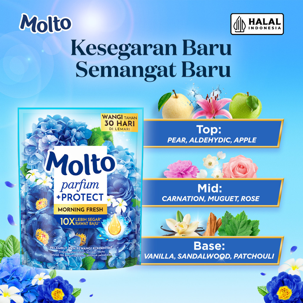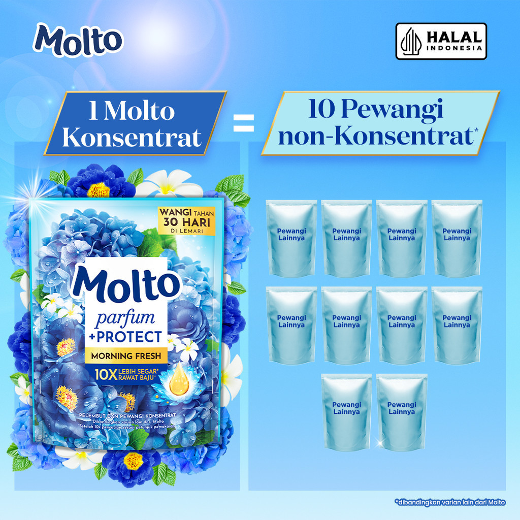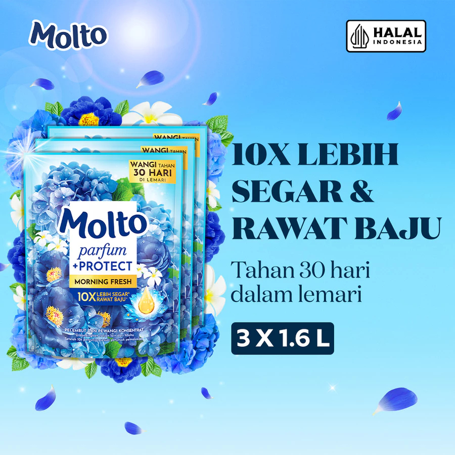 Molto Pelembut & Pewangi Pakaian Softener Konsentrat Parfum +Protect Morning Fresh 1.6 L x3