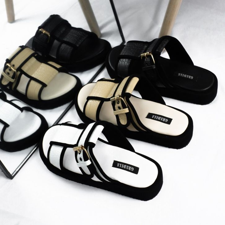 Gradela Sandal Wanita Kekinian Bahan Kulit High Quality Sandals Slip On Cewek Tali Platform Korean Style Cantik