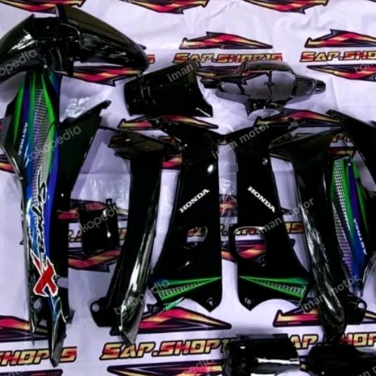 COVER BODI FULL HALUS SUPRA X LAMA 100CC CORAK STRIPING HIJAU BIRU