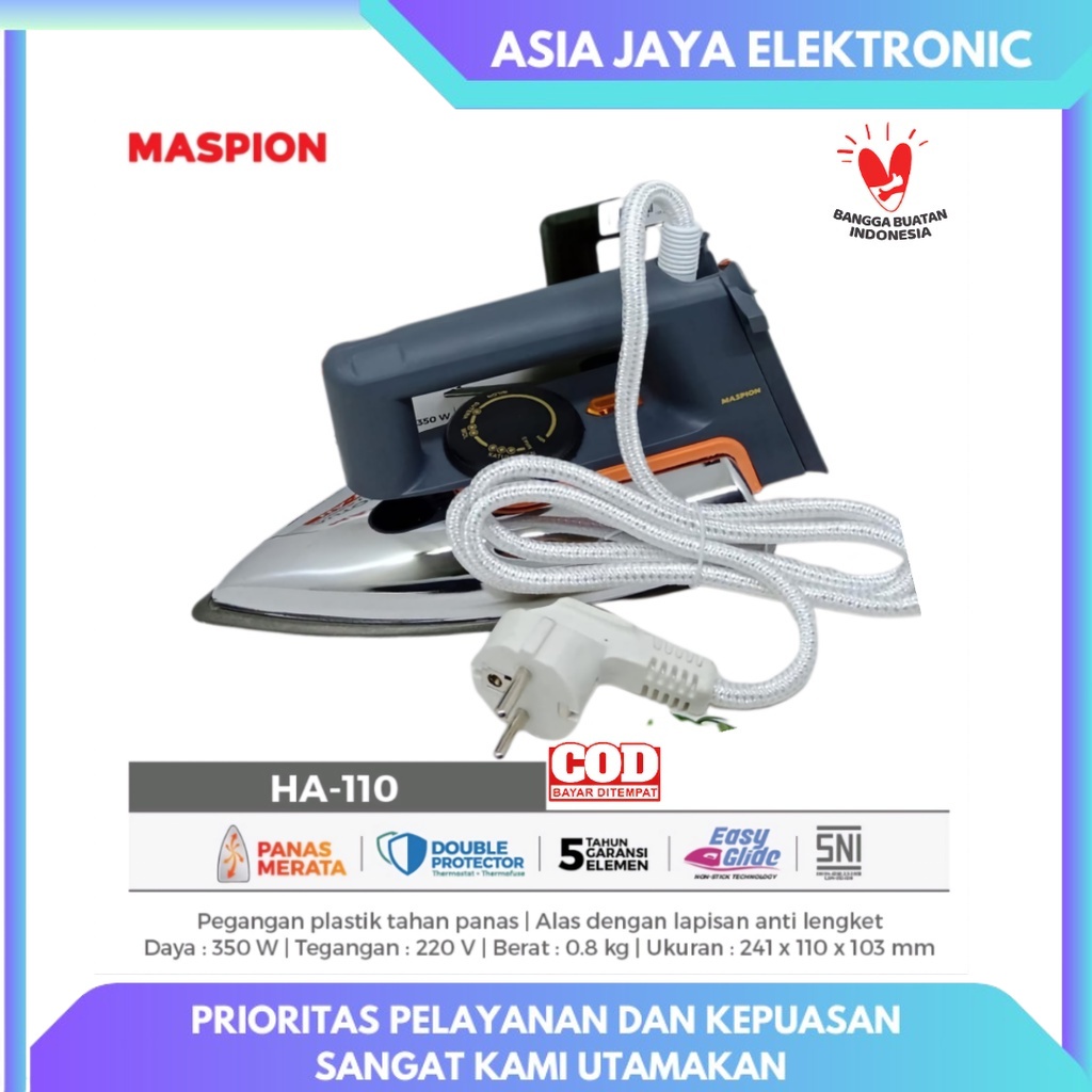 MASPION Setrika HA-110 Stainless Anti Lengket 100%Original Garansi Resmi