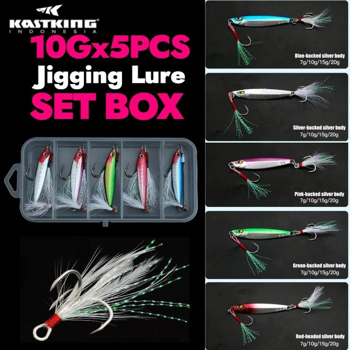 KASTKING Umpan Pancing Jigging Hook 5PCS micro jig 1 SET Memancing Spinner Umpan 10g Laser Metal