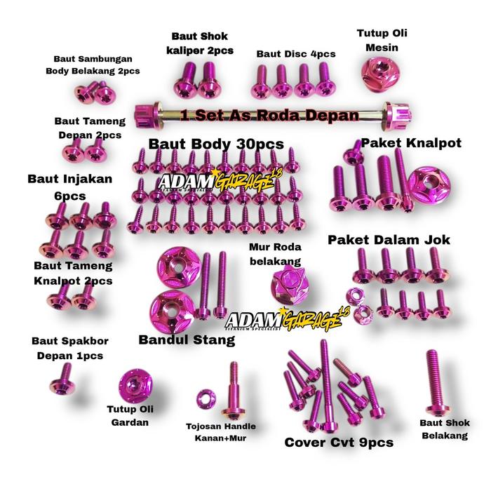 PAKETAN BAUT TITANIUM FULL TERLIHAT YAMAHA MIO SPORTY DAN SMILE GRADE 5 ADAM GARAGE - HIJAU NEON