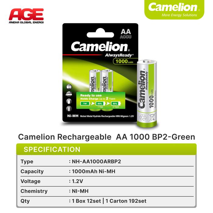 PROMO CAMELION RECHARGEABLE BATTERY CHARGER AA BATERAI CAS A2 BATERE 1000MAH