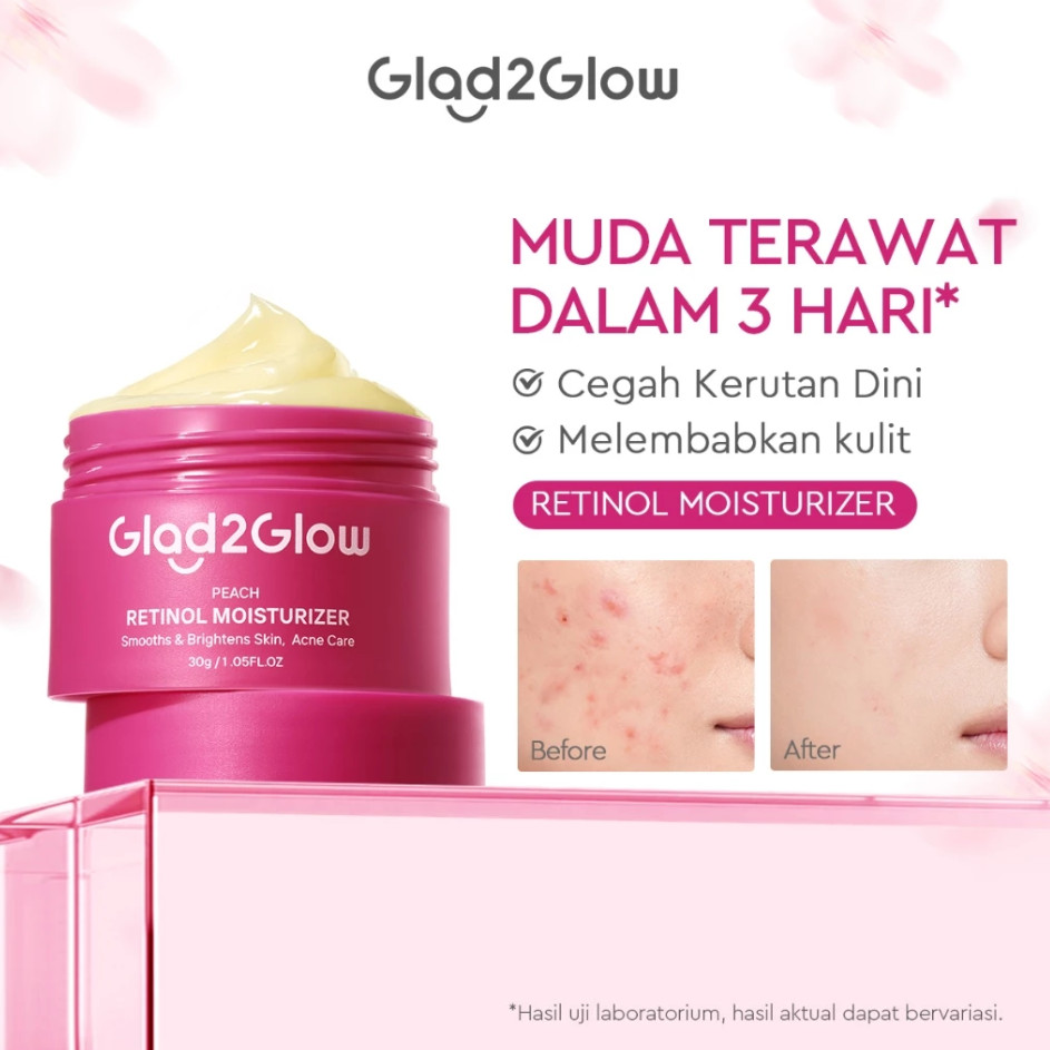 Glad2Glow Pomegranate Niacinamide Power Bright White Serum Wajah 17ml Peach Retinol Moisturizer 30g