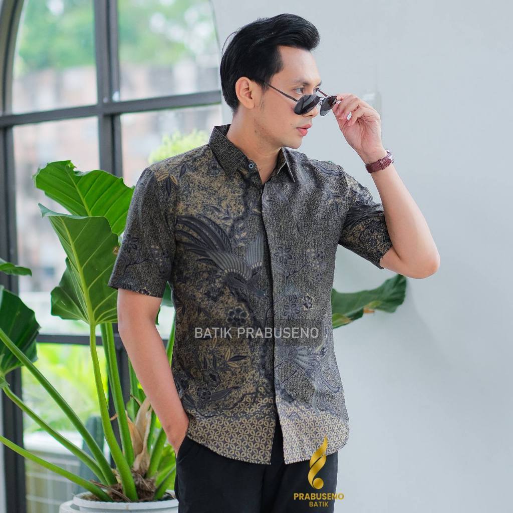 REGHAN Hem Baju Kemaja Batik Pria Lengan Pendek Slimfit Slim Fit Original Prabuseno Official Kain Katun Premium Modern E