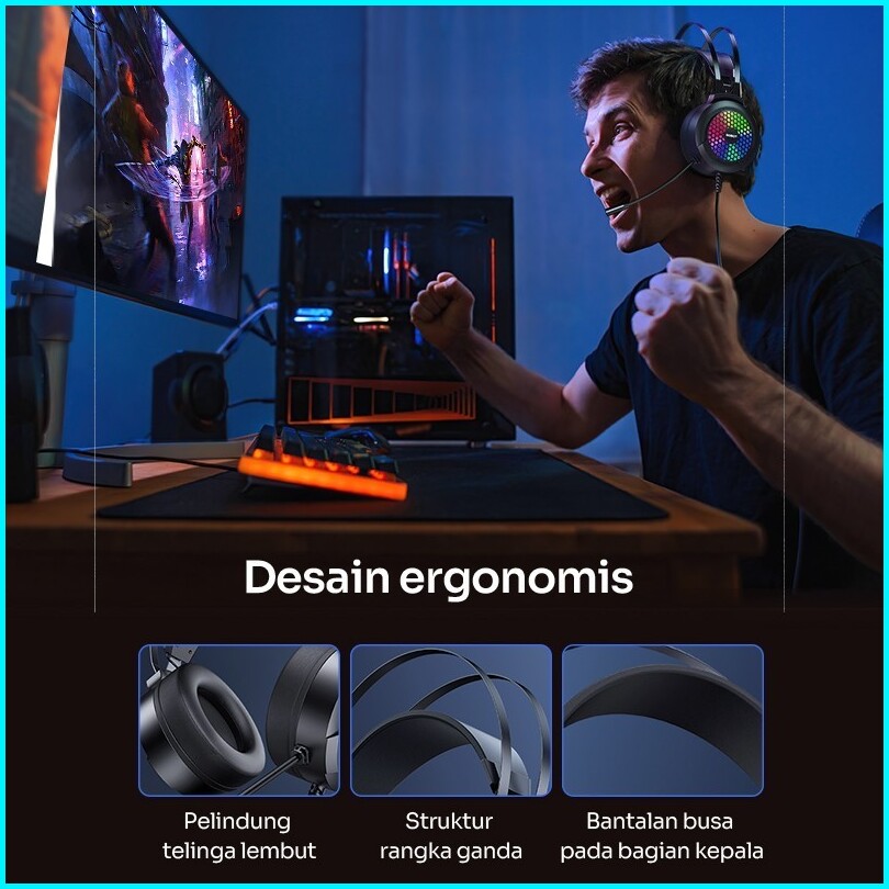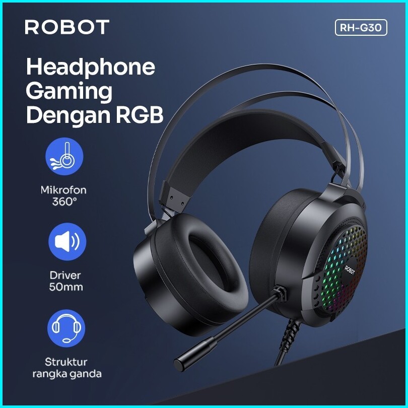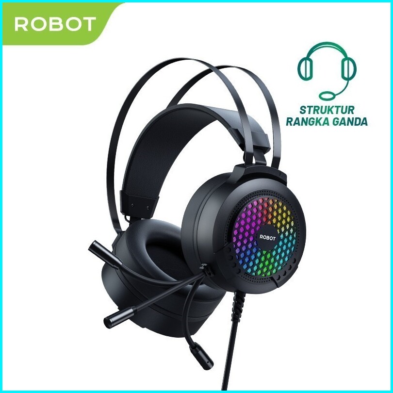 Robot Headphone Rh-g30 Headset Gaming Wired 3d Black Stereo Sound Rgb Light Garansi Original Resmi