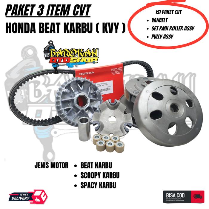 PAKET KIRI CVT LENGKAP 3ITEM KVY PULLY A55Y BEAT + RUMAH ROLLER SET + VANBELT BEAT KARBU / SCOOPY / SPACY KARBU