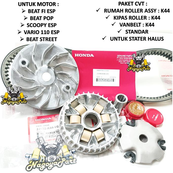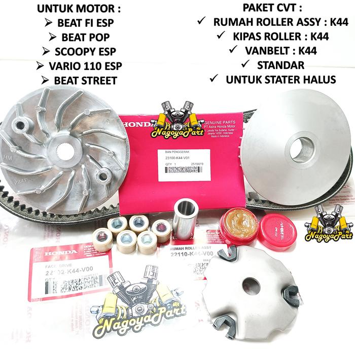 PAKET CVT VANBELT + RUMAH ROLLER SET + KIPAS ROLLER BEAT POP BEAT FI ESP VARIO 110 FI ESP SCOOPY FI ESP BEAT STREET K44