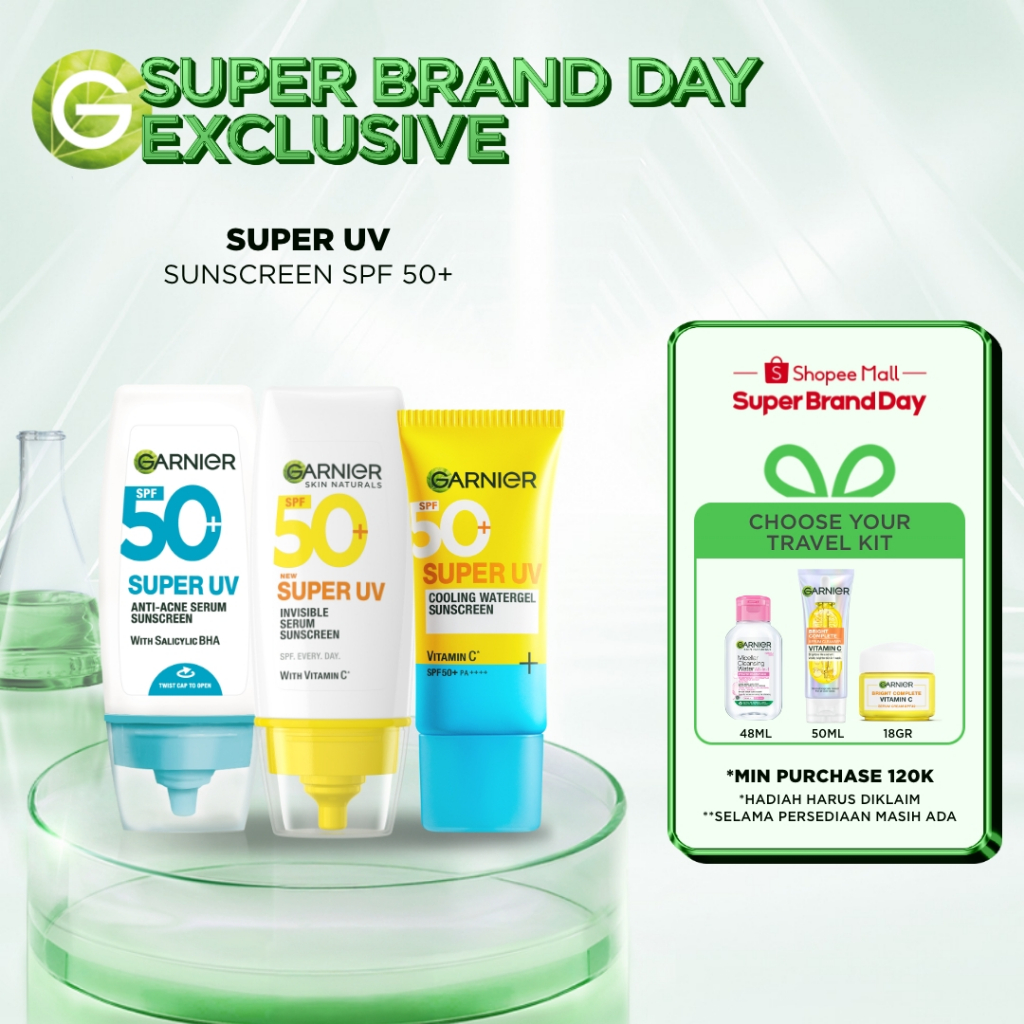 GARNIER Super UV Serum Sunscreen ALL VARIANT SPF 50+ PA++++ Vitamin C Skincare - 30ml Sunblock Mencerahkan Wajah sunscre