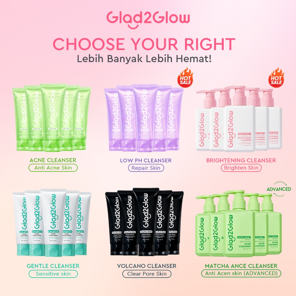 【100 PERSENORI】Glad2Glow Facial Cleanser 5pcs Blueberry Ceramide Low pH Gel Cleanser Pembersih Wajah Pembersih Muka Facial Cle