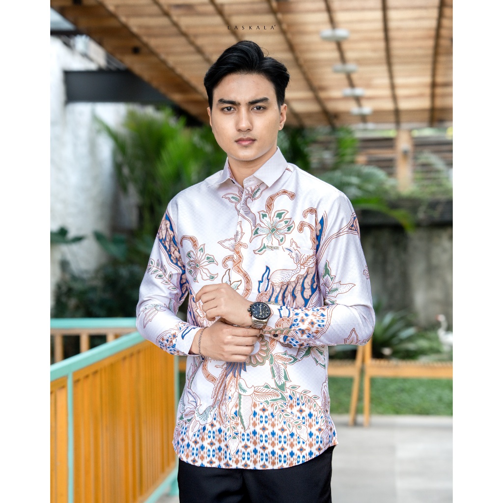 Laskala Batik Premium Tondano Cream Kemeja Batik Pria Slimfit Lengan Panjang