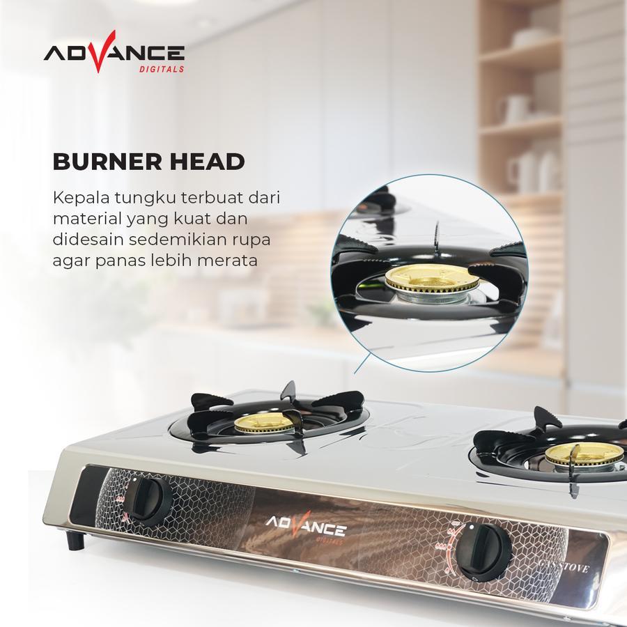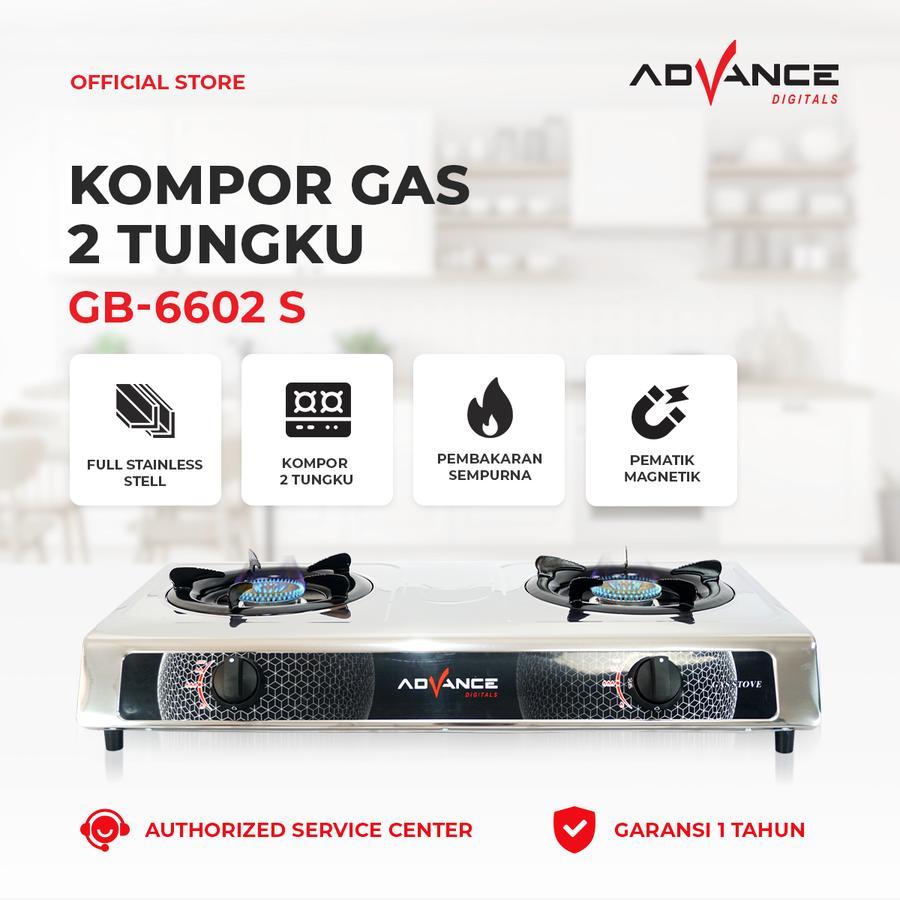 Kompor Gas Stainless Steel 2 Tungku ADVANCE GB-6602S (KHUSUS INSTAN KURIR)