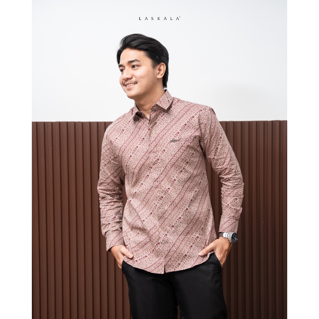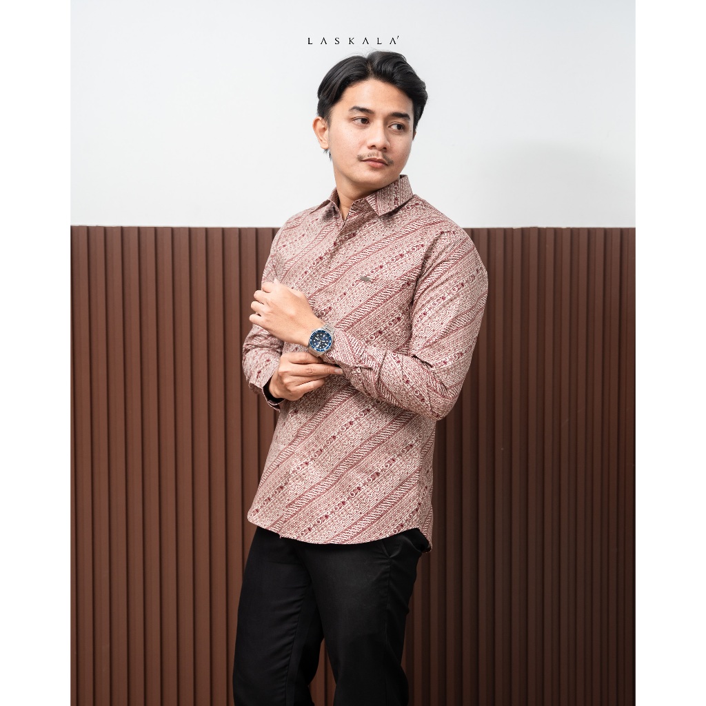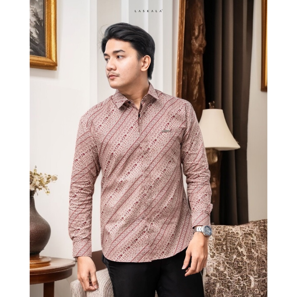 Laskala Batik Premium Seoul Kemeja Batik Pria Slimfit Lengan Panjang