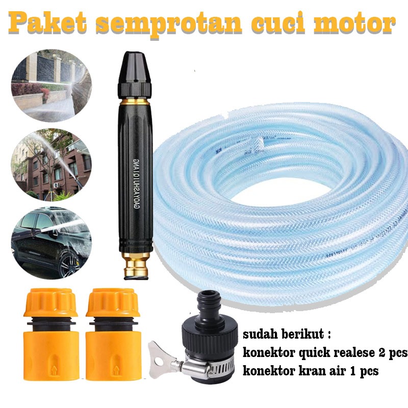 Selang Semprotan Air Semprot Cuci Motor Mobil Siram Taman Benang 2-20 Meter - Paket Selang + Kepala Semprotan Cuci Motor