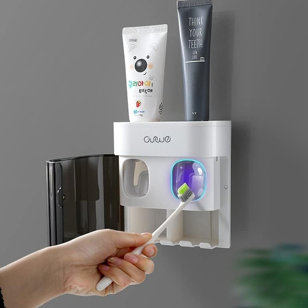Dispenser Odol Dan Tempat Sikat Gigi Dua Slot Pemeras Pasta Gigi Otomatis Yang Dipasang Di Dinding