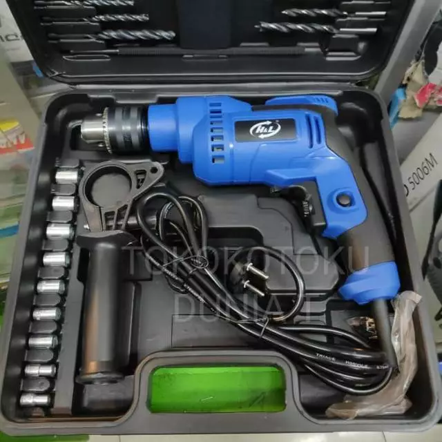 Mesin Bor Listrik Set H&L 13mm Impact Drill Box Set Komplit HnL HL913