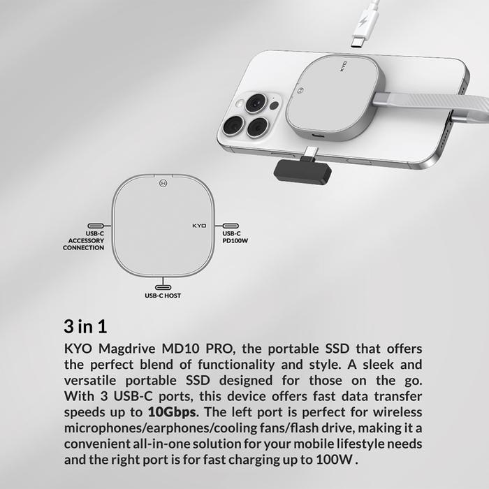 KYO MAGDRIVE MD10 10GBPS MAGSAFE MAGNECTIC SSD PORTABLE USB 3.2 GEN 2X1 10GBPS MAGNET PORTABLE SSD OTG DRIVE EXTERNAL SSD EKSTERNAL TYPE-C - MD10, 128GB