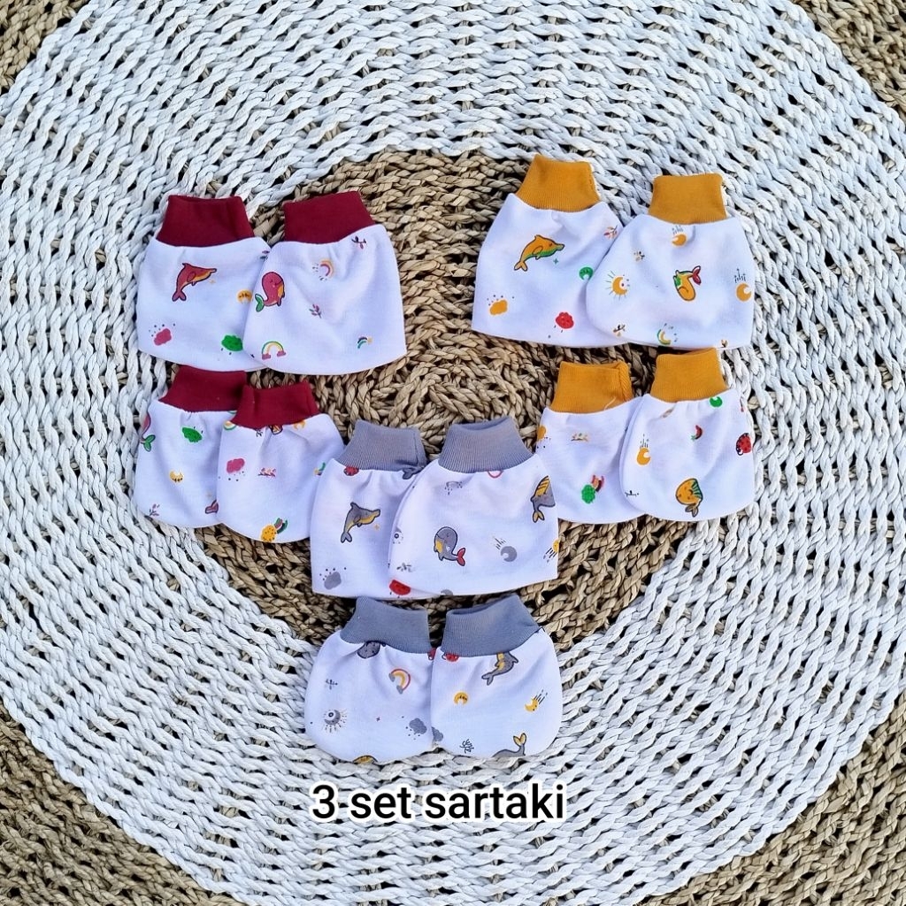 sarung tangan dan kaki bayi baru lahir 3 setel