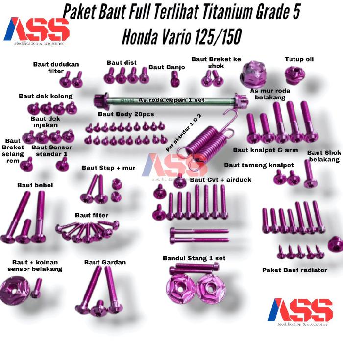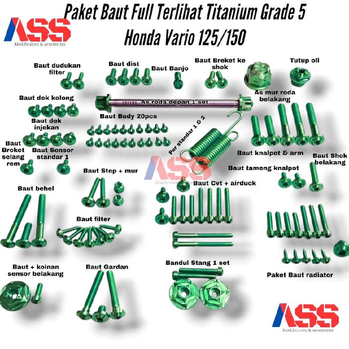 PAKET BAUT TITANIUM GRADE 5 FULL BAGIAN TERLIHAT HONDA VARIO 125 VARIO 150 KZR - HIJAU TOSCA
