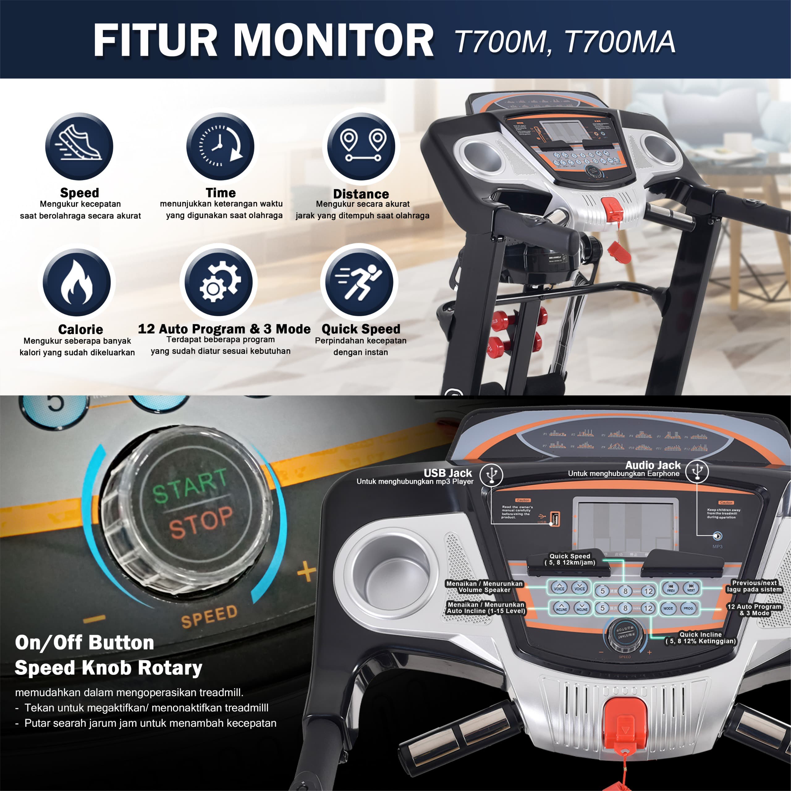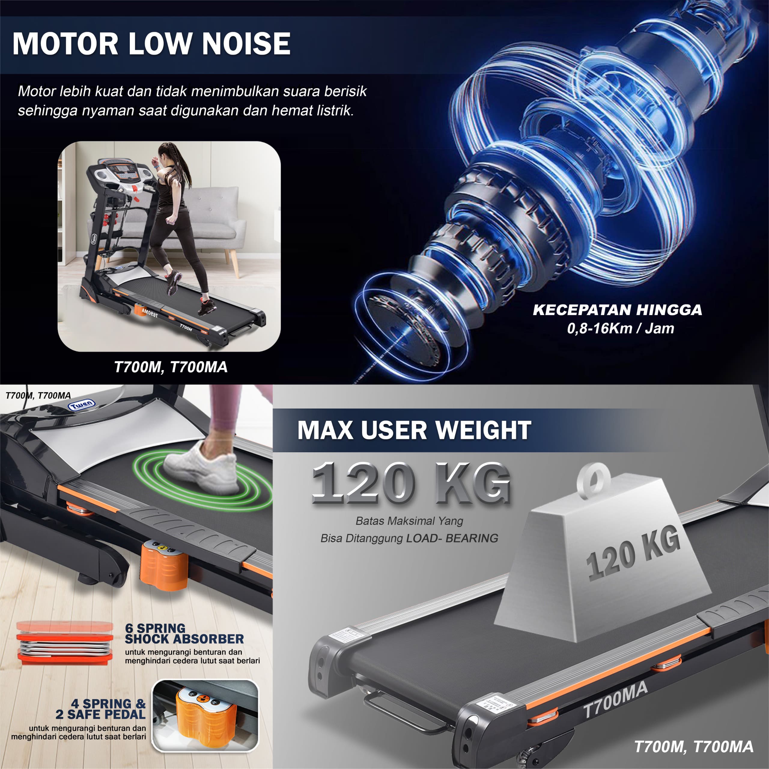 TWEN T700MA Treadmill Listrik Treadmill Portable Treadmill Multifungsi Treadmil Lipat Treadmill Electric Low Watt