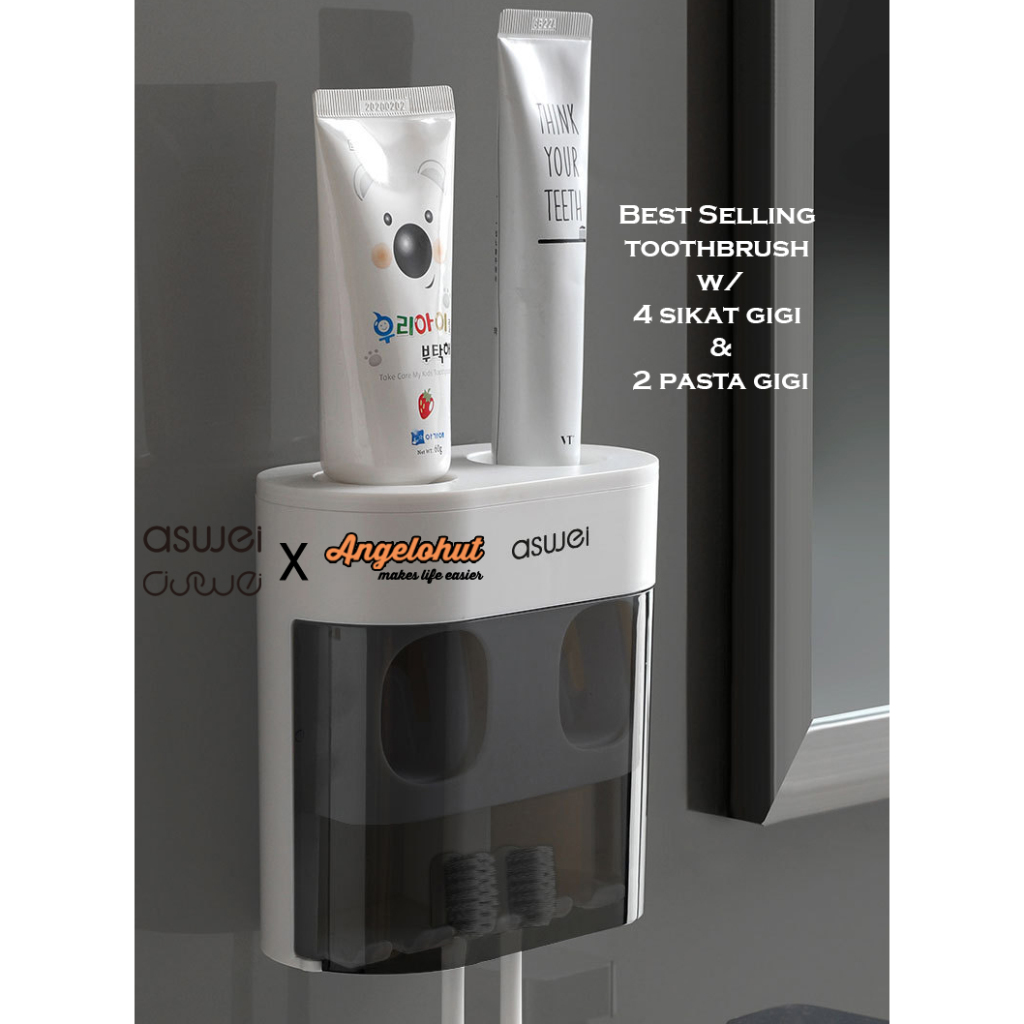 Aswei A17 Dispenser Odol dan Tempat Sikat Gigi dengan Penutup Anti Bakteri