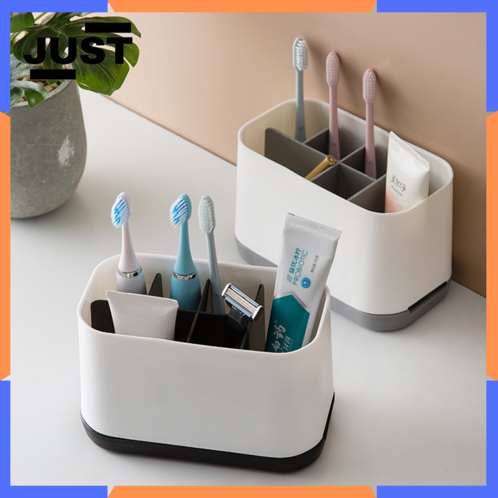 JUST Rak Kamar Mandi Dispenser Sikat Gigi Odol Organizer Tempat Penyimpanan Alat Kamar Mandi Sikat Gigi Pasta Gigi Serba