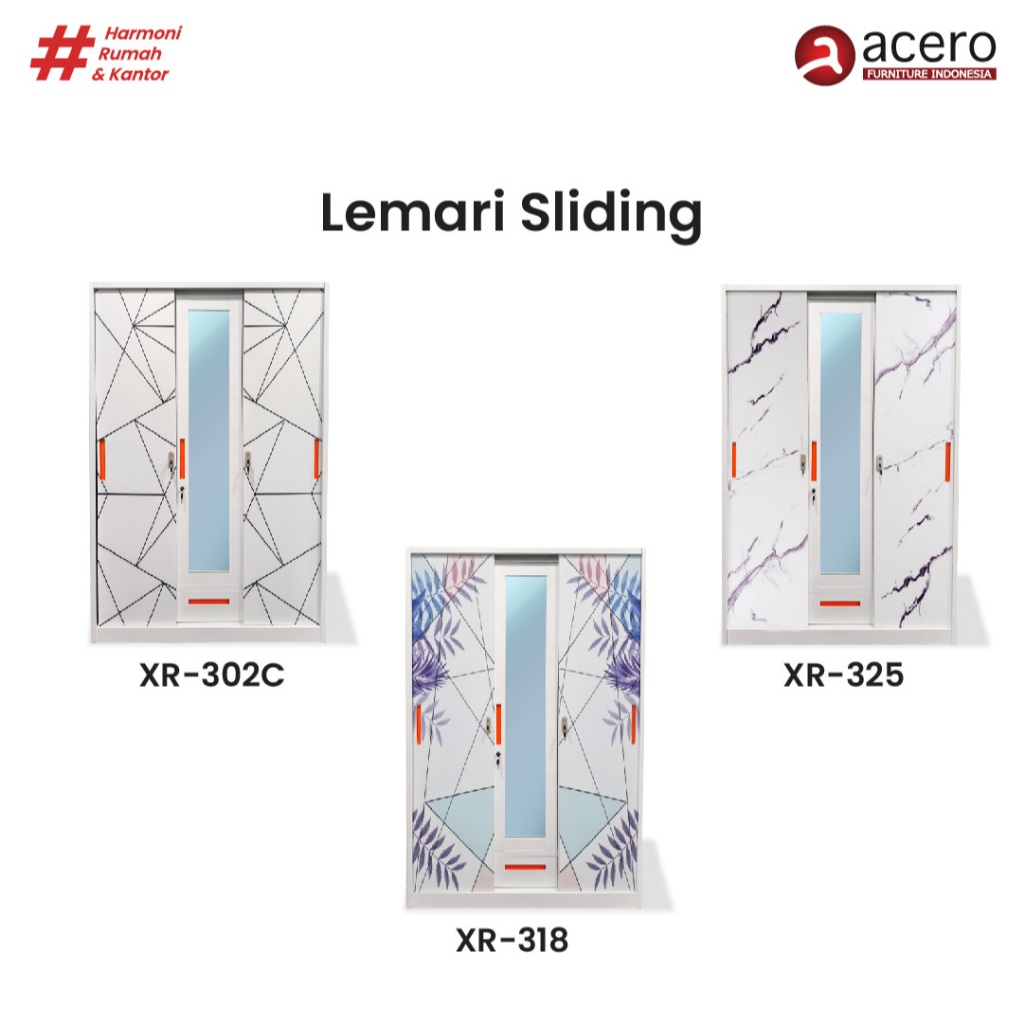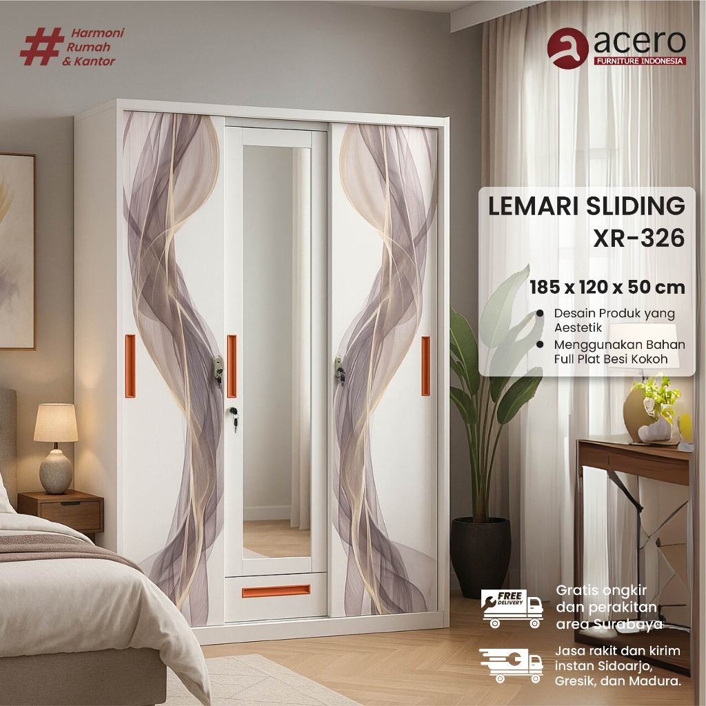 Lemari Pakaian Minimalis Sliding Plat Besi Minimalis 3 Pintu XR302C FREE PACKING KAYU Gratis Ongkir