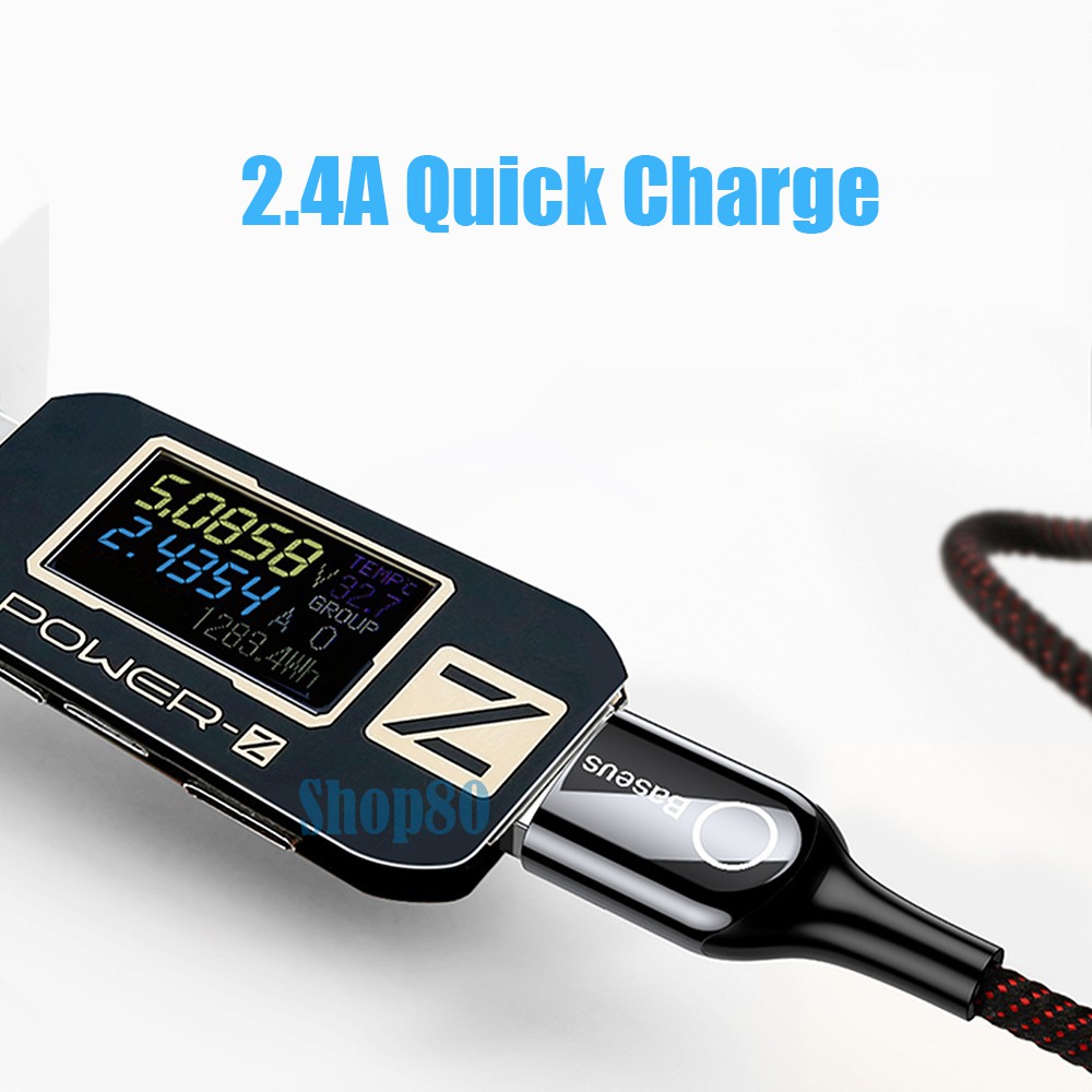 Kabel Data Charger Baseus Apple iPhone Lightning 1M 2.4A Auto Power Off iPhone X XS Plus 11 6 7 8