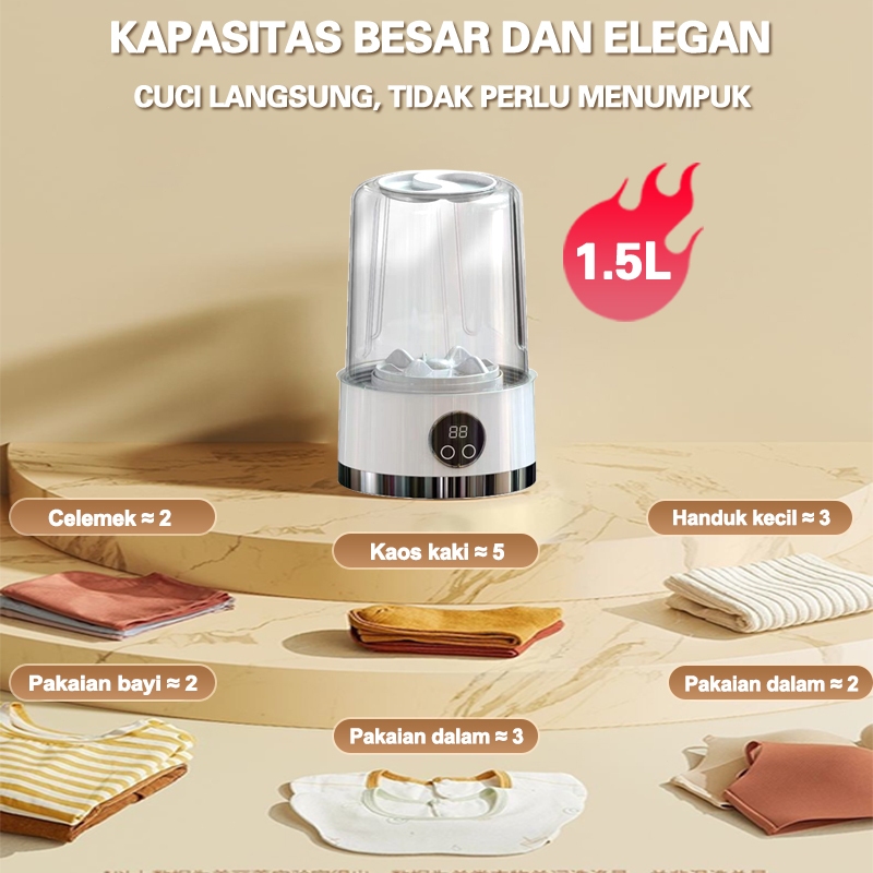 GOBOOX Mesin Cuci Mini Portable Wireless Underwear Small Rechargeable Laundry Cup Celana Dalam Washing Alat Cuci 1.5