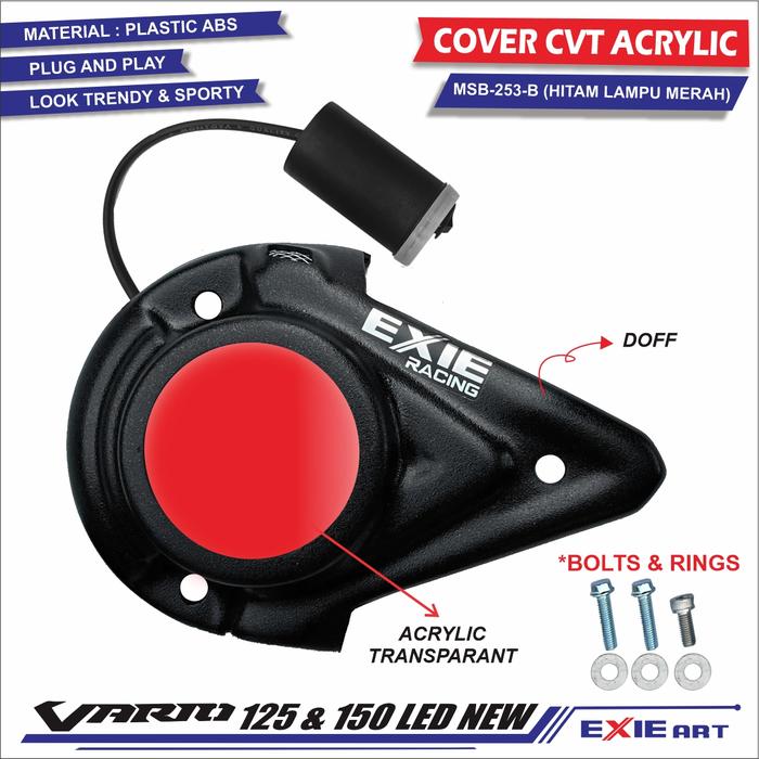 COVER CVT AKRILIK HONDA VARIO 125 & 150 NEW LED AKSESORIS PENUTUP CVT EXIE ART - HITAM TANPA LAMPU, VARIO 125 2018 - 202
