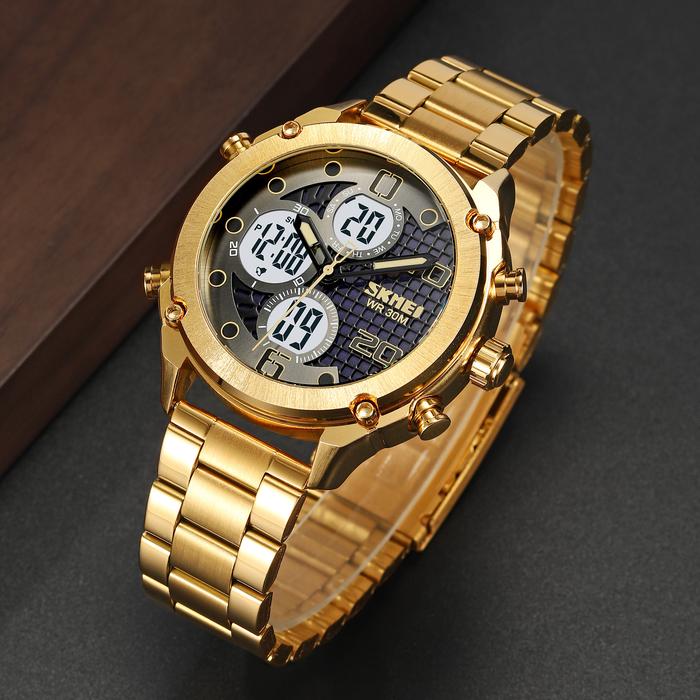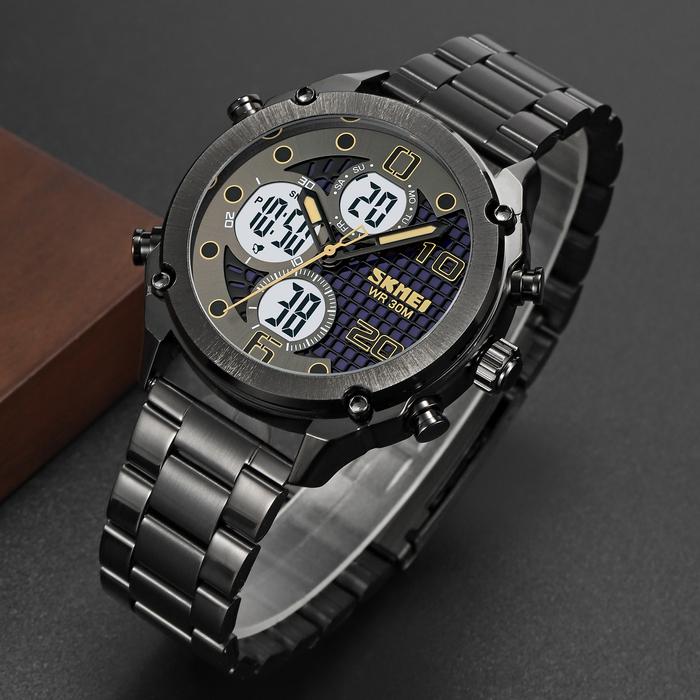 Promo Jam Tangan Pria Jam Tangan Pria Digital Analog Chronograph Dual Time Stainless Steel Anti Air