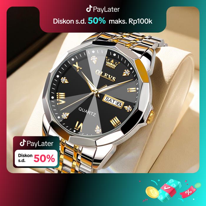 Promo Jam Tangan Pria OLEVS Jam Tangan Pria Cowok Keren Anti Air Original Rantai Keren Mewah Luxury