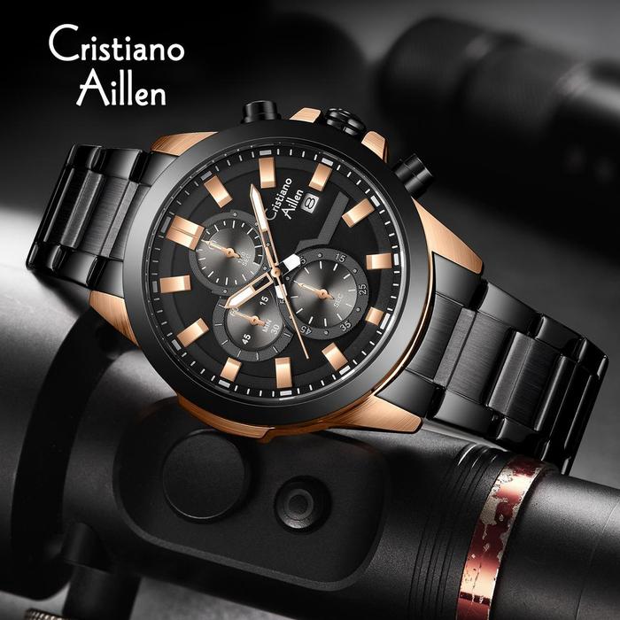 Promo Jam Tangan Pria Buy 1 Get 1 Cristiano Aillen Jam Tangan Pria Analog 8892 Rantai Stainless