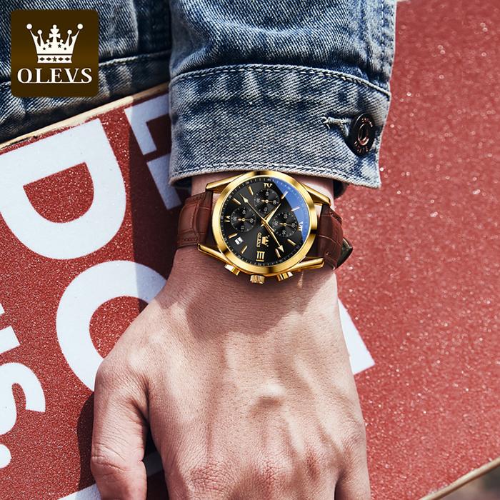Promo Jam Tangan Pria OLEVS Jam Tangan Pria Anti Air Original Kulit Asli LED Bisnis Multi-fungsi