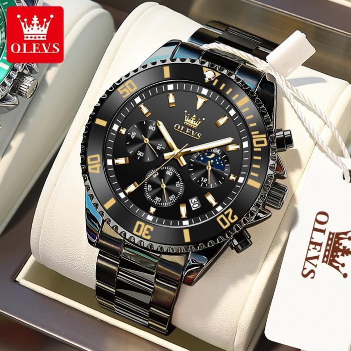 Promo Jam Tangan Pria OLEVS Jam Tangan Pria Anti Air Original Besi Tahan Karat Multifungsi Cowok