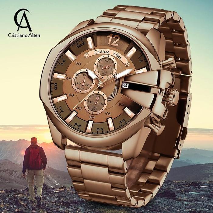 Promo Jam Tangan Pria Buy 1 Get 1 Cristiano Aillen Jam Tangan Pria Analog 0832G Rantai Stainless