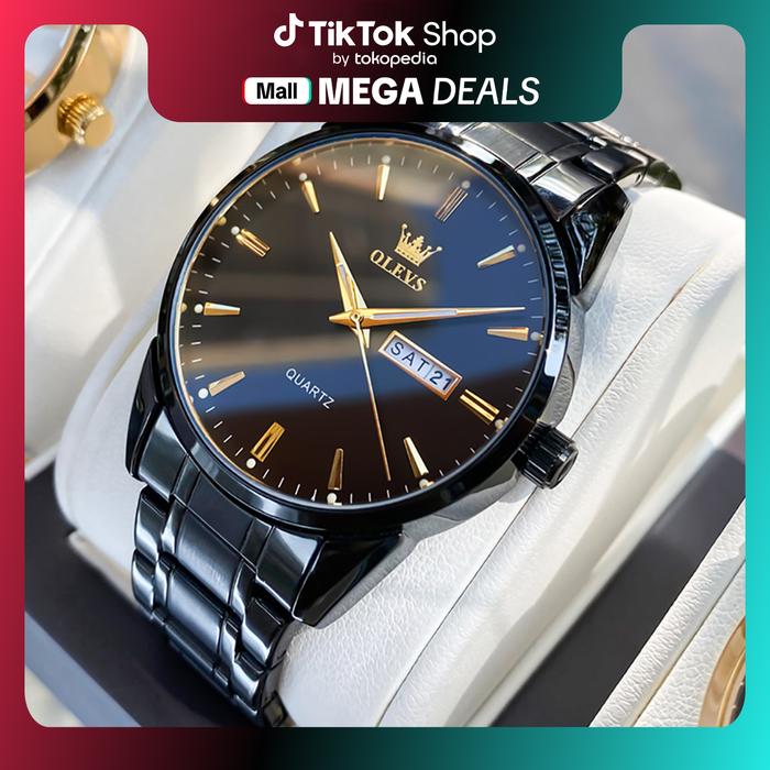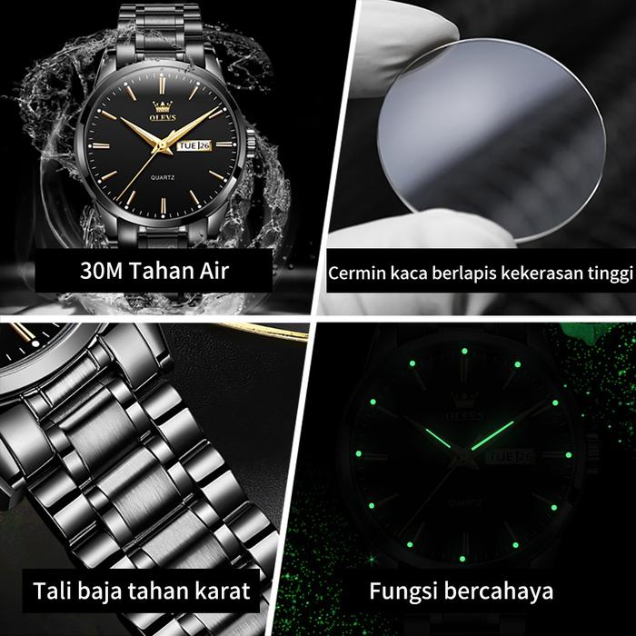 Promo Jam Tangan Pria OLEVS Jam Tangan Pria Anti Air Original Cowok Stainless Steel Luminous Analog