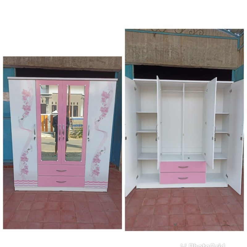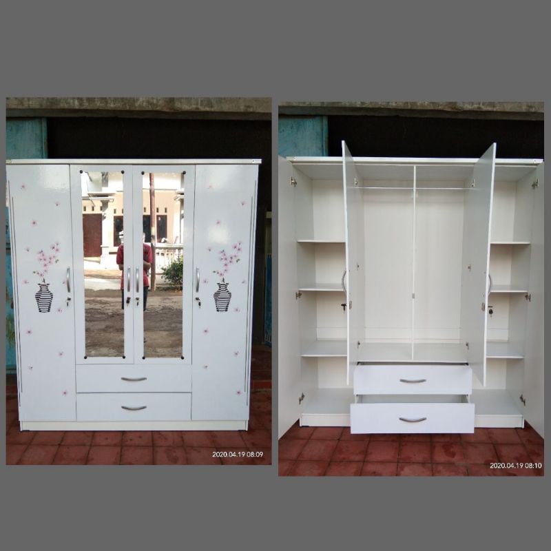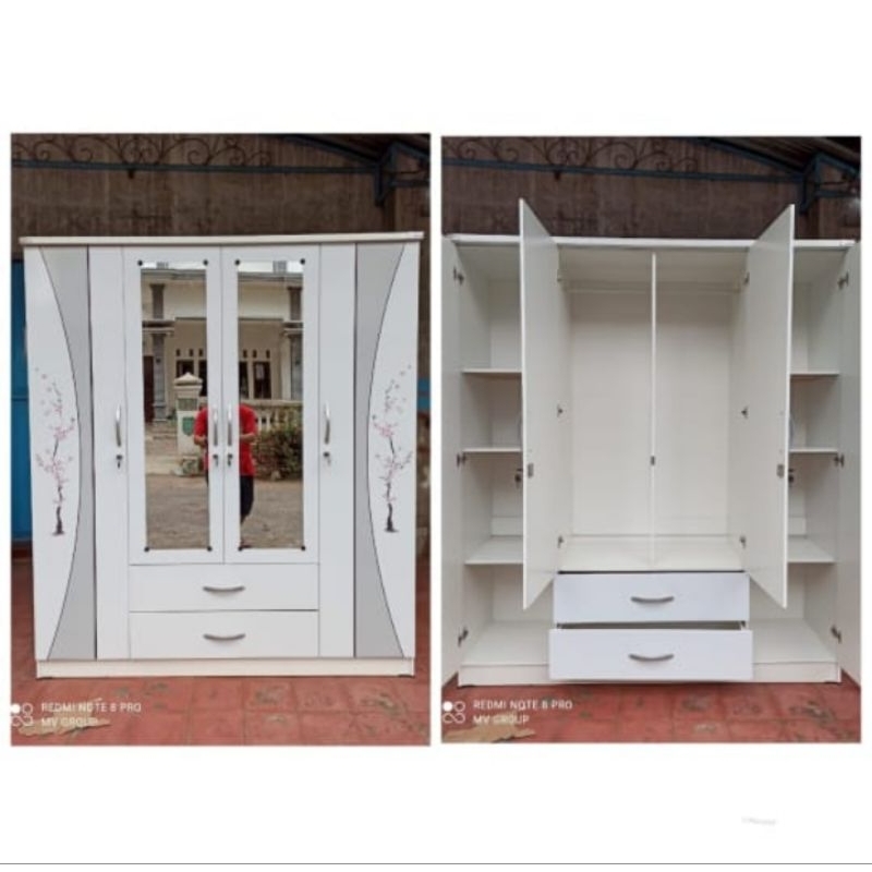 Lemari Partikel 4 Pintu Kaca Dengan Laci Tengah Gratis Ongkir