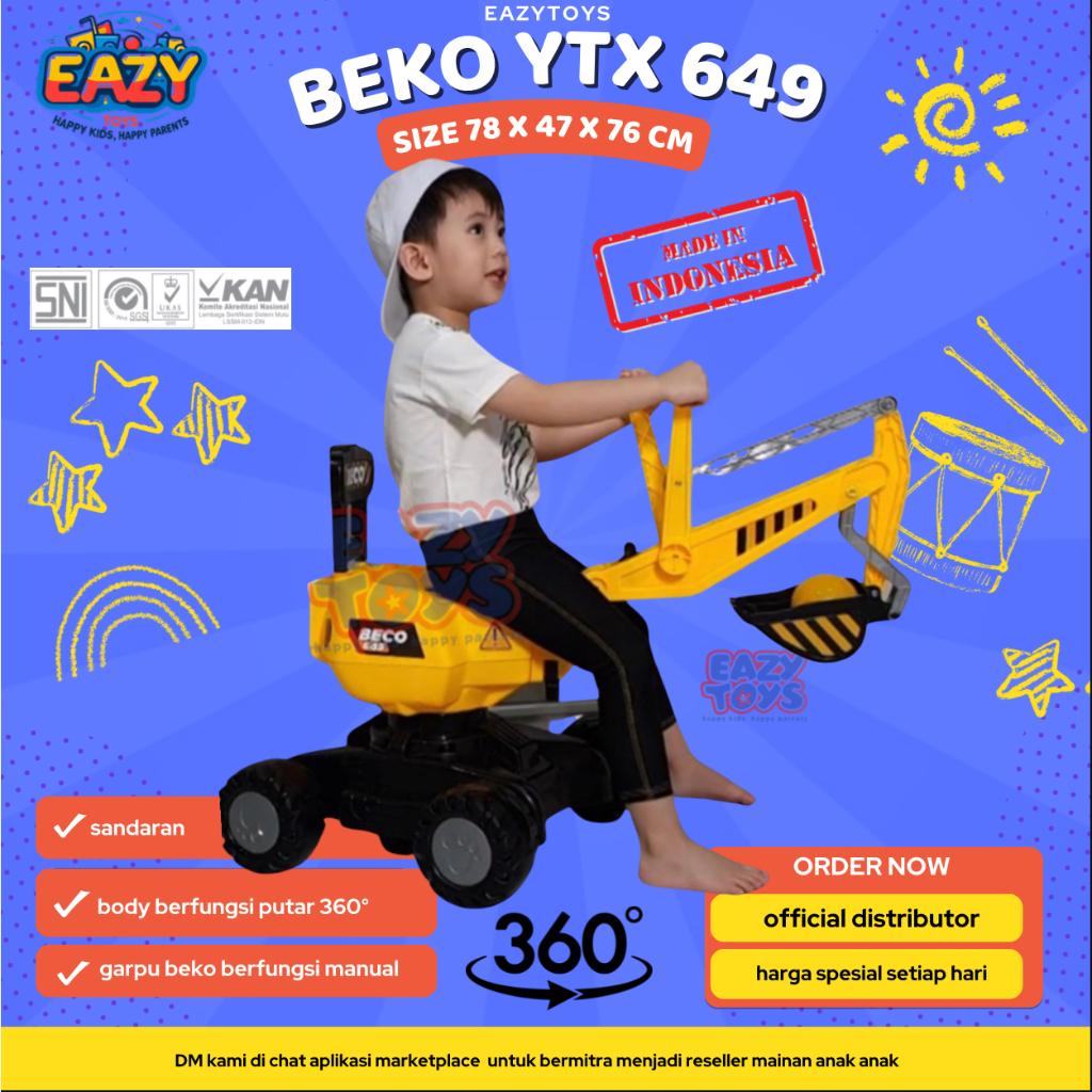 Mobil Dorong Anak Laki Laki Excavator PMB YTX 649 Beko Dorong Manual Mainan Anak Murah Gratis Ongkir
