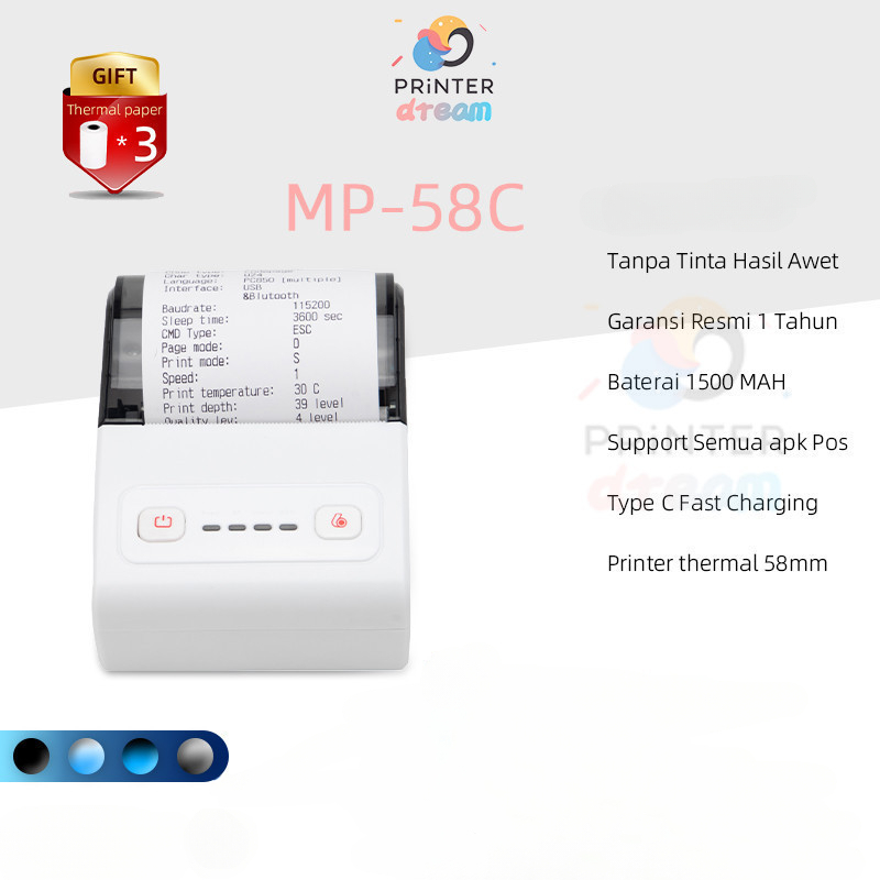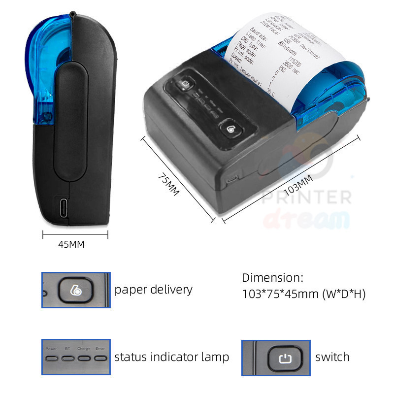 paper*3!!Printer Thermal Mini Bluetooth 58mm Mobile Printer PortableReceipt Printer 58MM- Wireless Bluetooth & USB Ther