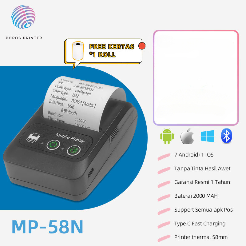 PRINTER KASIR 58mm Printer Thermal alat print resi support //Windows Bluetooth +USB 1 rol kertas