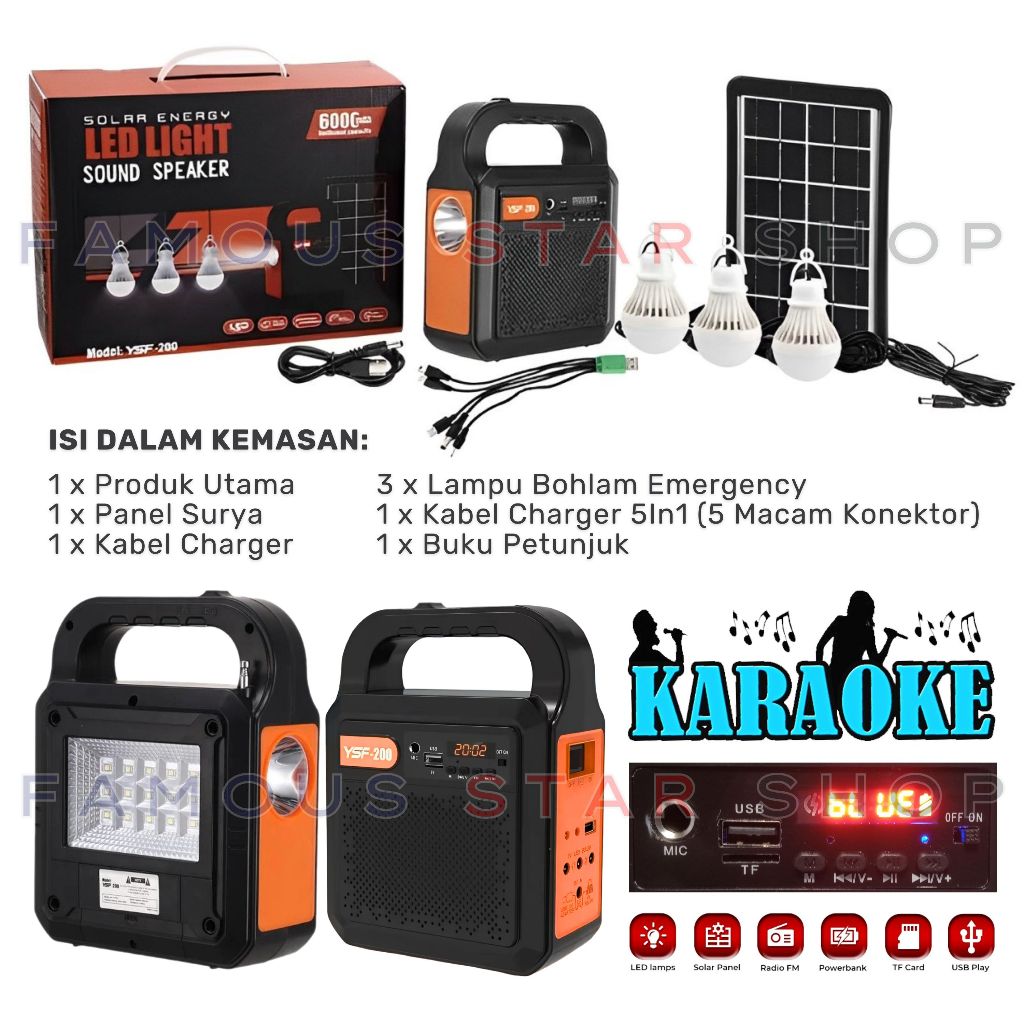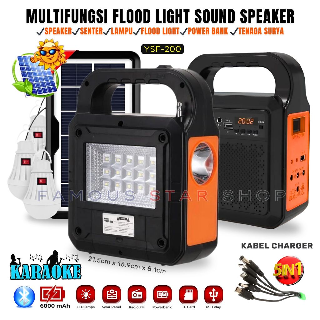 Solar Light Lampu Panel Surya + Speaker Bluetooth Radio Full Bass Bluetooth Karaoke Lampu Tenaga Surya Solar Panel LED Y