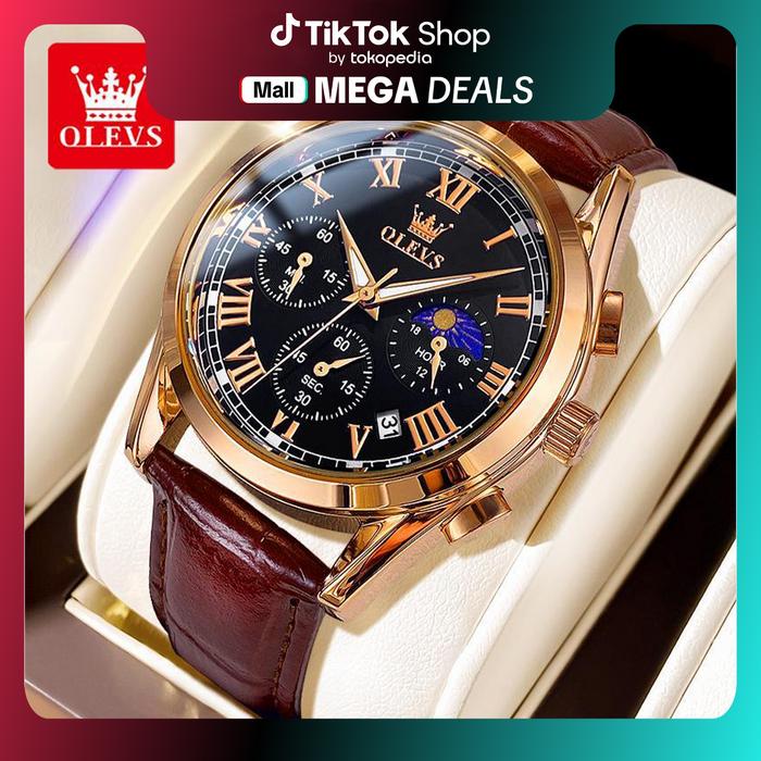 Promo Jam Tangan Pria OLEVS Jam Tangan Pria Original Anti Air Kulit Tahan Keren 2025 Led Hitam