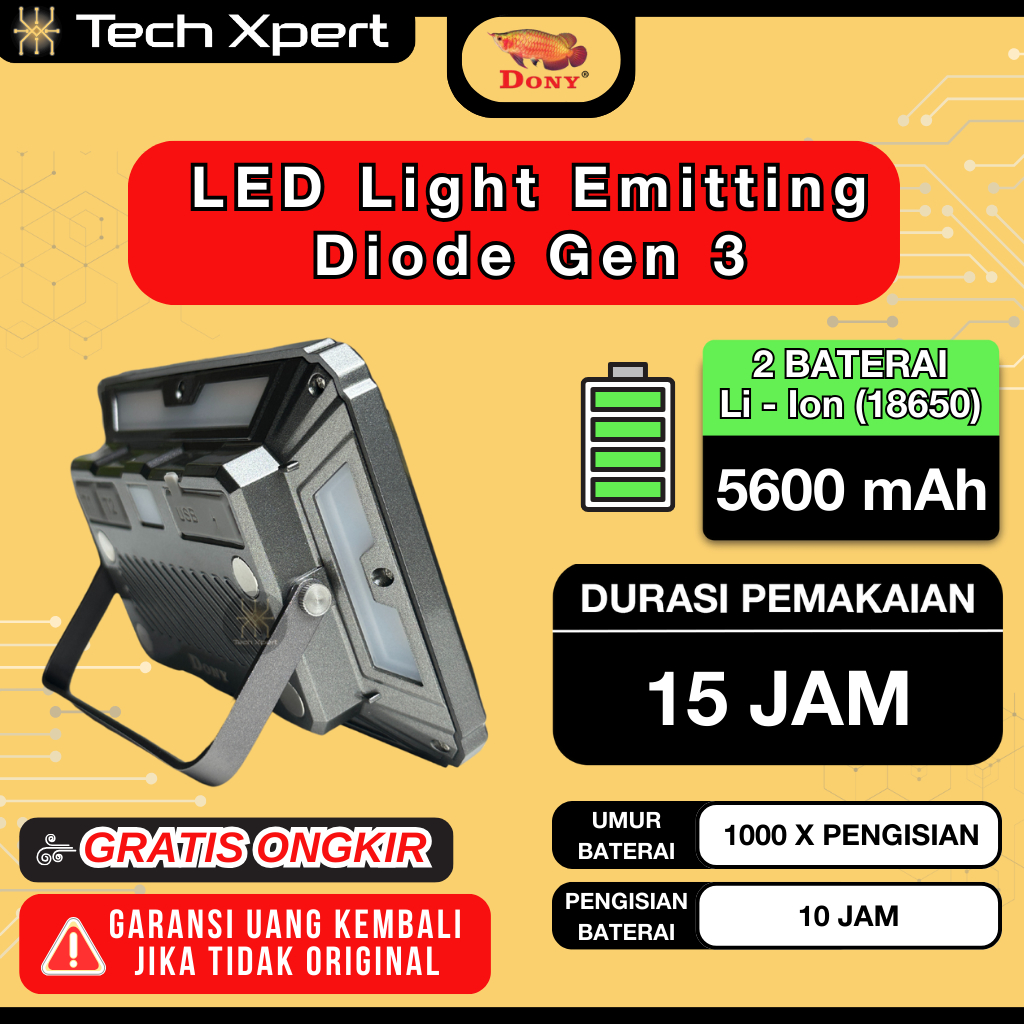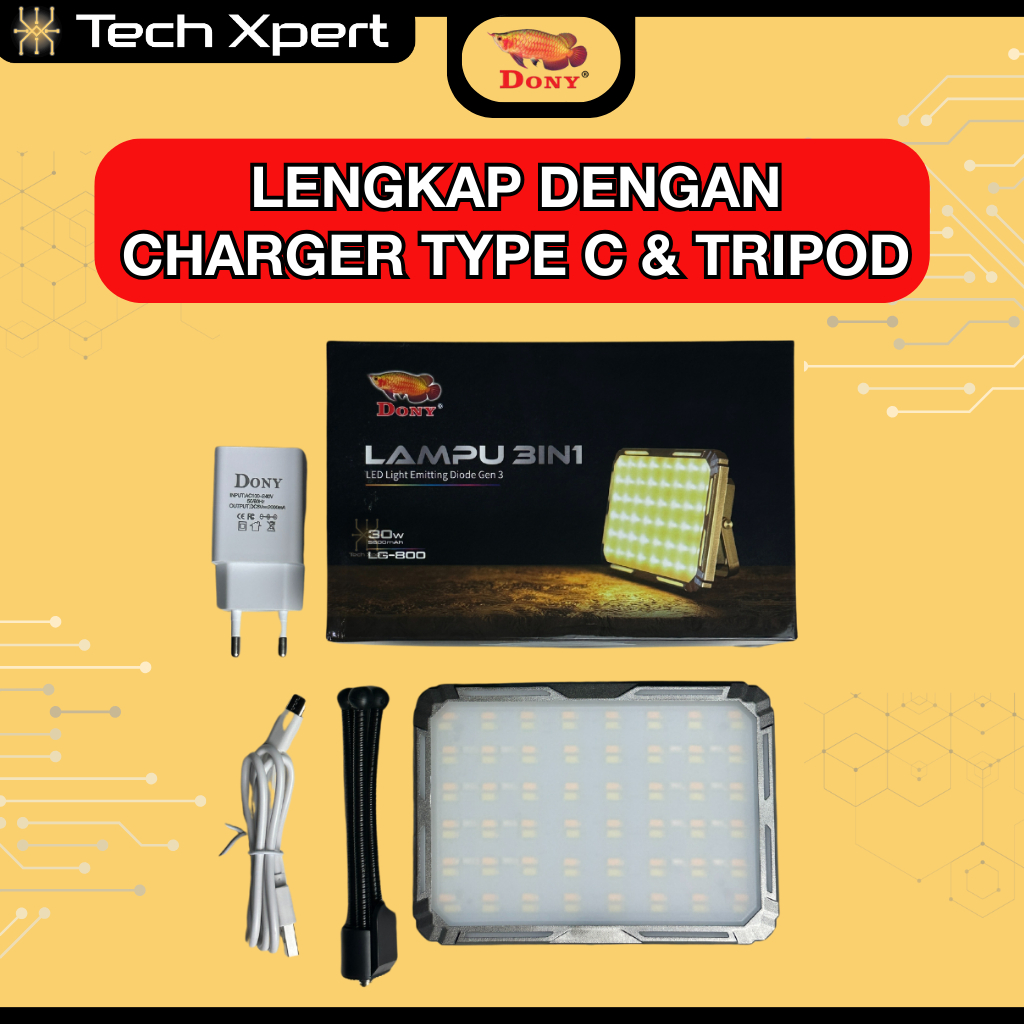 Lampu Sorot Dony 3 in 1 LG-800 LED 30W Cahaya Putih & Kuning Original Multifungsi Emergency Camping